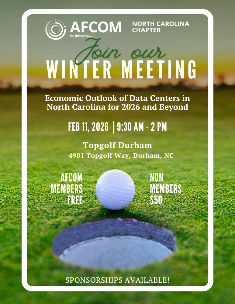 PLEASE JOIN OUR WINTER MEETING! Wednesday, Feb 11, 2026 9:30 AM - 2:00 PM ET FREE FOR AFCOM MEMBERS | $50 FOR NON-MEMBERS ADVANCE REGISTRATION REQUIRED | SPACE LIMITED