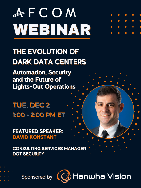 Join us as we examine the tools and technologies shaping the future of data center security, where automation meets protection in the journey toward truly autonomous, dark data center operations. Webinar Speaker: David Konstant Consulting Services Manager DOT Security David Konstant currently serves as Manager of Consulting Services at DOT Security. With a background in penetration testing, compliance management, and virtual CISO (vCISO) advisory, he has supported organizations ranging from multinationals and publicly traded corporations to members of the Defense Industrial Base. David focuses on helping organizations build holistic, scalable security programs that align with both operational and regulatory demands. His perspective combines an attacker-first mindset with security-by-design principles to drive measurable improvements in resilience and maturity. Sponsored by Hanwha Vision