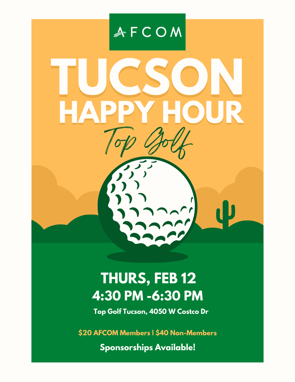 JOIN OUR NEXT TUCSON EVENT! Happy Hour at Top Golf! 📅 Feb 12 🕚 4:30 PM – 6:30 PM 📍 Top Golf Tucson 4050 W Costco Dr, Tucson AZ 85741 💵 Admission: $20 for Members | $40 for Non-Members The AFCOM Arizona Chapter is hosting a Topgolf Happy Hour in Tucson, bringing together data center professionals for casual networking, great conversations, and friendly competition. Enjoy an evening of golf swings, drinks, and industry connections in a relaxed, open-air setting. Whether you're a longtime member or new to the community, this is a perfect chance to meet peers and strengthen relationships in the Tucson market.